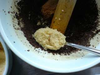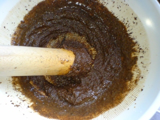 味噌、砂糖、生姜、を加えて、またゴリゴリします。